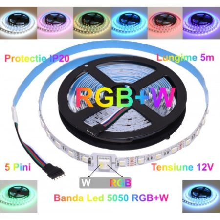 - Iluminare Eficientă: Banda RGBW emite o lumină puternică și clară, datorită celor 300 de led-uri SMD 5050, ceea ce o face ideală pentru iluminatul ambiental sau de accent în orice spațiu interior.
