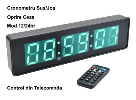 - Control de la Distanță: Ceasul vine cu o telecomandă care facilitează oprirea și controlul cronometrației de la distanță, oferind utilizatorilor flexibilitate și comoditate în timpul utilizării.